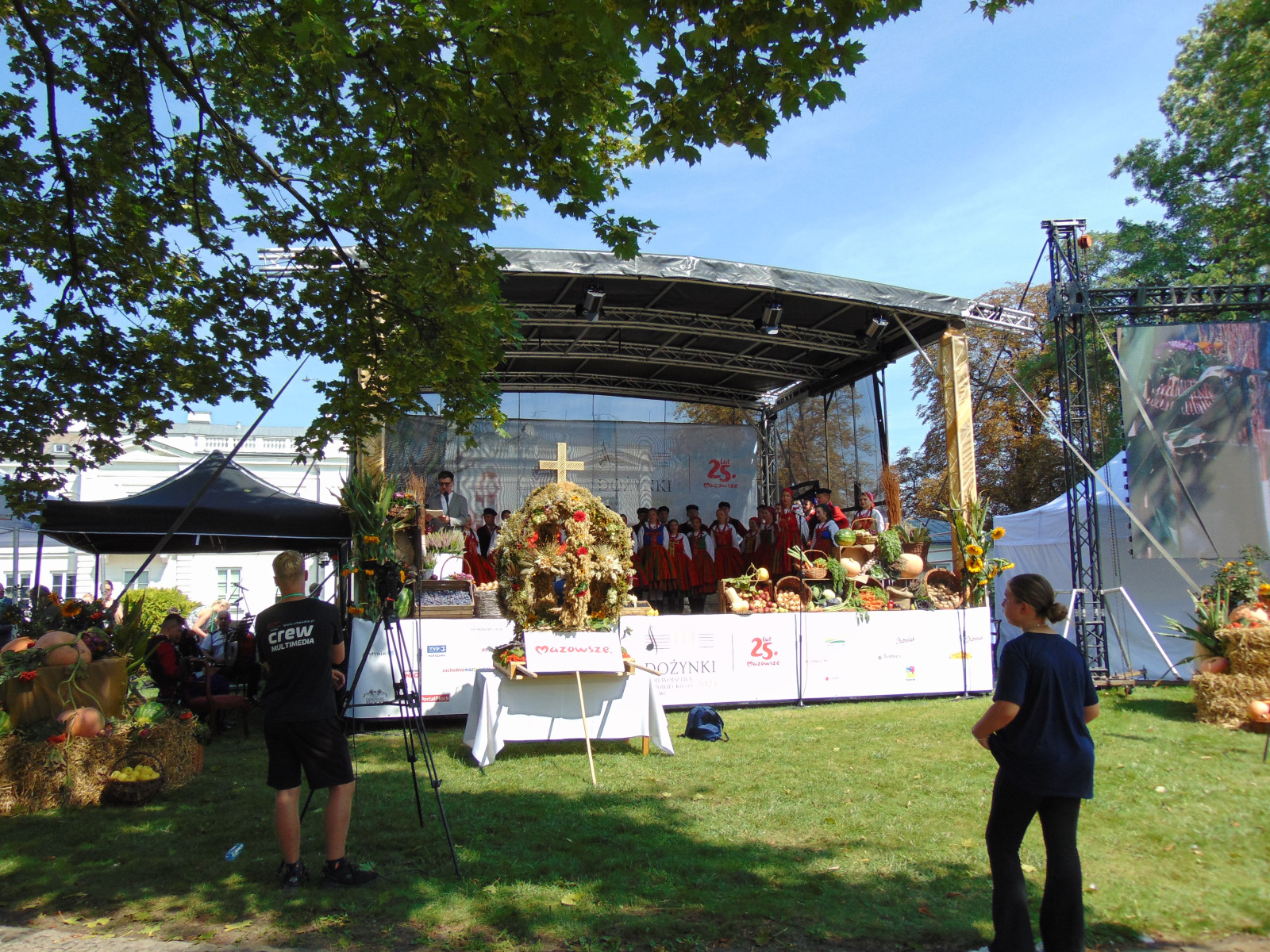 Dożynki województwa mazowieckiego w Sannikach; o działalności Koła Gospodyń Wiejskich "Kreatywne" w Hucie Nowej (gm. Gostynin) mówią członkinie KGW: Wanda Staniszewska i Anna Jędrzejewska; o turystyce wiejskiej, kulinarnej oraz o rzwoju turystyki jako części gospodarki Mazowsza, mówi Izabela Stelmańska, wicedyrektor Departamentu Kultury, Promocji i Sportu Mazowieckiego Urzędu Marszałkowskiego; o działalności rolniczej (80 ha ziemi, hodowla indyków i kaczek) oraz o swojej działalności społecznej na wsi, mówią Monika i Paweł Czerwińscy, rolnicy ze wsi Nagodów (pow. gostyniński), pełniący podczas Dożynek funkcję starostów dożynkowych.