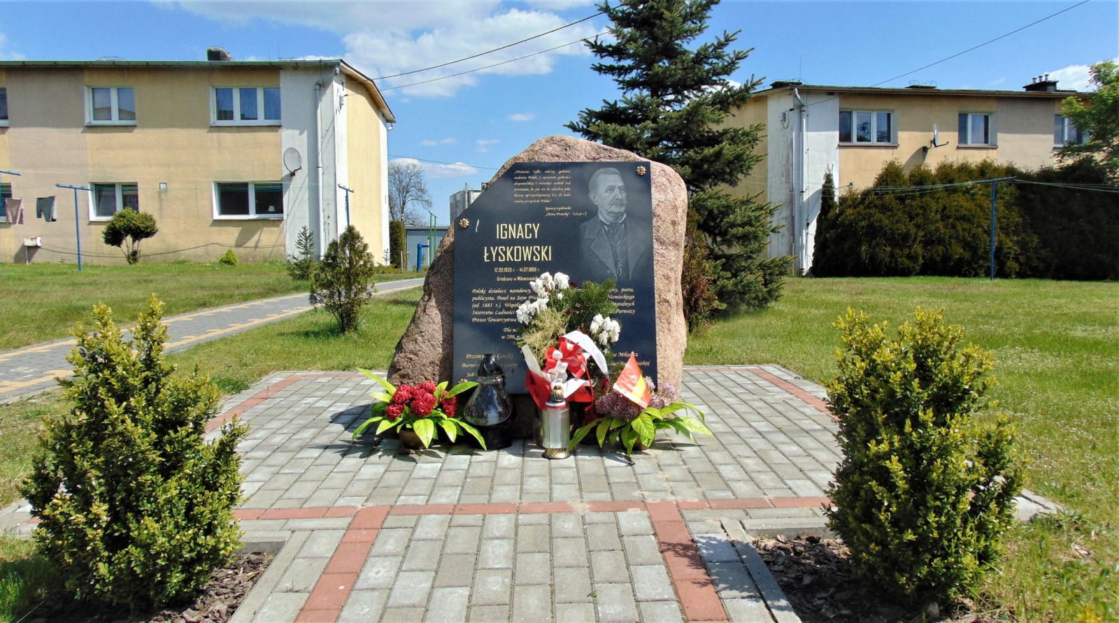 15. Obelisk z tablicą ku czci I. Łyskowskiego na osiedlu po byłym PGR w Mileszewach, wystawiony z inicjatywy Krystyny Warachowskiej; fot. P. Łoś/RDC