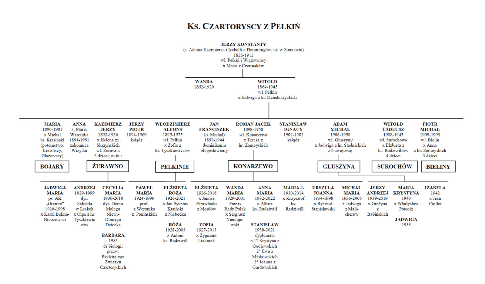 Jeszcze za życia Witold Leon podzielił klucz pełkiński między dzieci. Dość szybko osiadł na swoim Roman Czartoryski (1898-1958), przejmując dziedzictwo po matce, czyli majątek Konarzewo Dzieduszyckich w Wielkopolsce.
