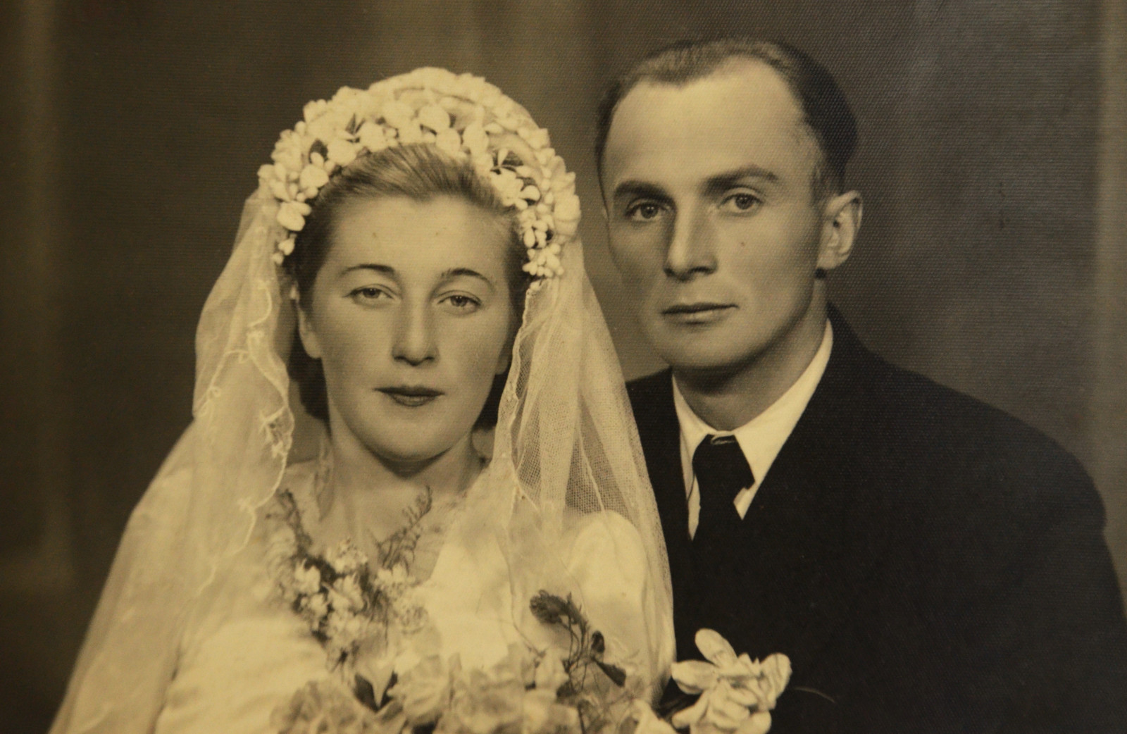 1. Janina z Wąsaków Wróblewska z mężem Feliksem; fotografia ślubna; zbiory E. Migdalskiej