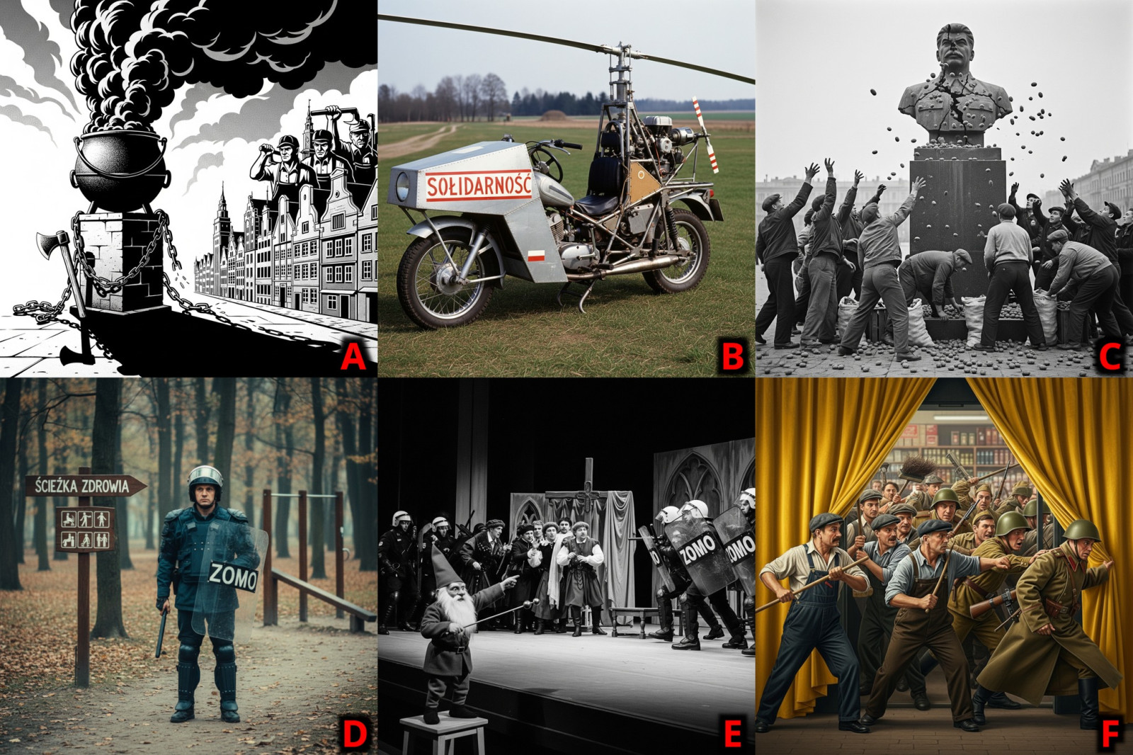Przed Państwem sześć ważnych miesięcy z najnowszej historii Polski. Niektóre oczywiście z różnych lat! W każdym razie są znane , jak widać, nawet sztucznej inteligencji (proszę wybaczyć literówki, AI z niemałym wysiłkiem uczy się języka polskiego!), która na podstawie ważnych wydarzeń z tychże miesięcy wygenerowała nam ilustracje.