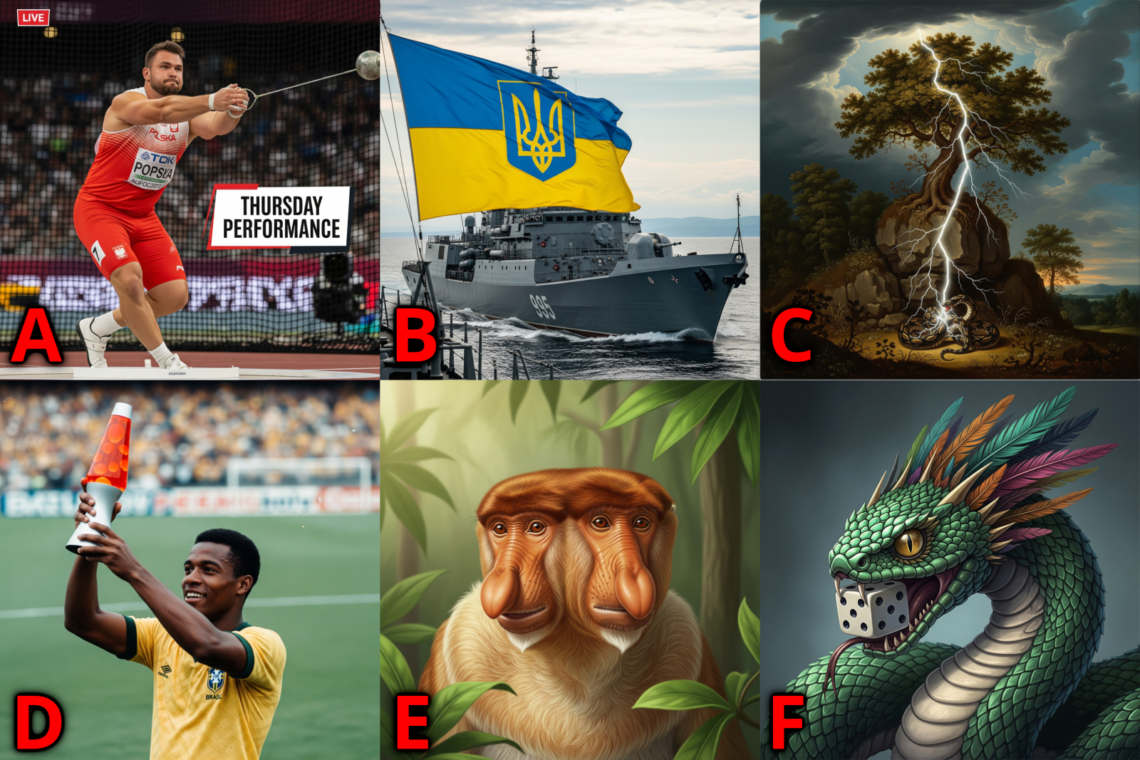 Skoro pierwsza godzina audycji uderzyła w tony nieledwie apokaliptyczne, to i druga nie może być gorsza! Dzisiejsza zagadka lateralna dotyczyć więc będzie bóstw i mitologii. I to nie tylko tych powszechnie znanych! W dodatku jest -- mam szczerą nadzieję -- wyjątkowo lateralna! Nowszy model AI, to i lepsze skojarzenia! A więc pod literami A do F kryją się bóstwa, bogowie, boginie... słowem, istoty boskie z sześciu różnych mitologii i systemów wierzeń. Zadaniem zgadujących jest natomiast te postaci odgadnąć!